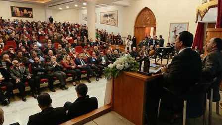 «اللقاء الوطني ضد التطبيع» في بعلبك أثناء احتفال في قاعة مسجد المصطفى، حضرته فاعليات سياسية وبلدية وحزبية وروحية.
