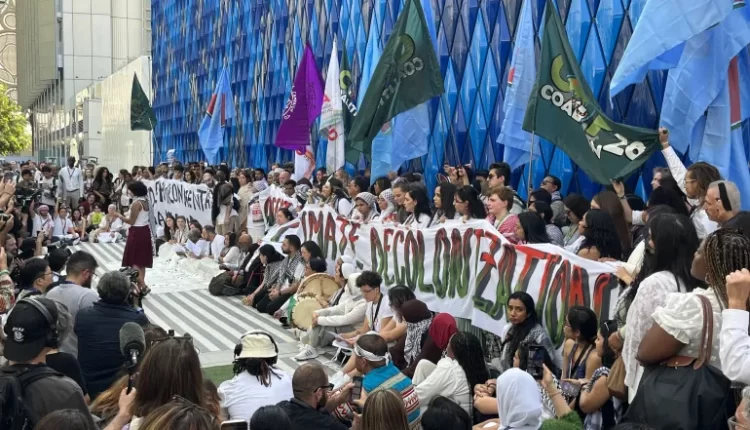 وأكد النشطاء خلال المظاهرة استحالة الكفاح العادل ضد التغير المناخي قبل تحقيق العدالة حول العالم، ورفعوا لافتات تدعو إلى إنهاء الاستعمار المناخي، وهتفوا بأن فلسطين حرة.