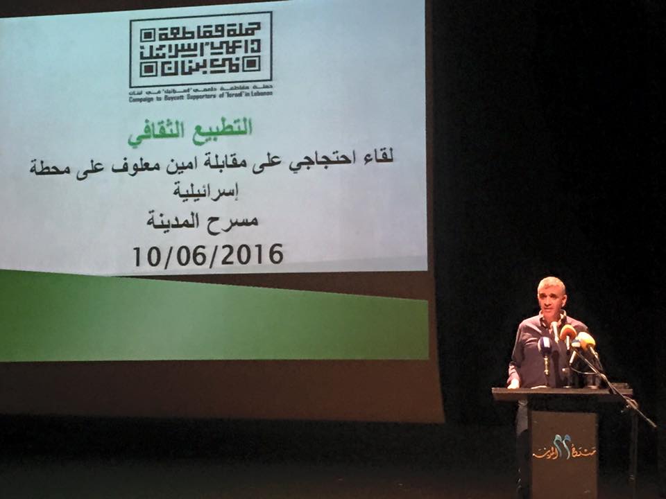 كلمة سماح إدريس باسم حملة مقاطعة داعمي “إسرائيل” في لبنان في اللقاء الاحتجاجي في مسرح المدينة على لقاء أمين معلوف بالمحطّة الإسرائيلية i24 في 2/6/2016.